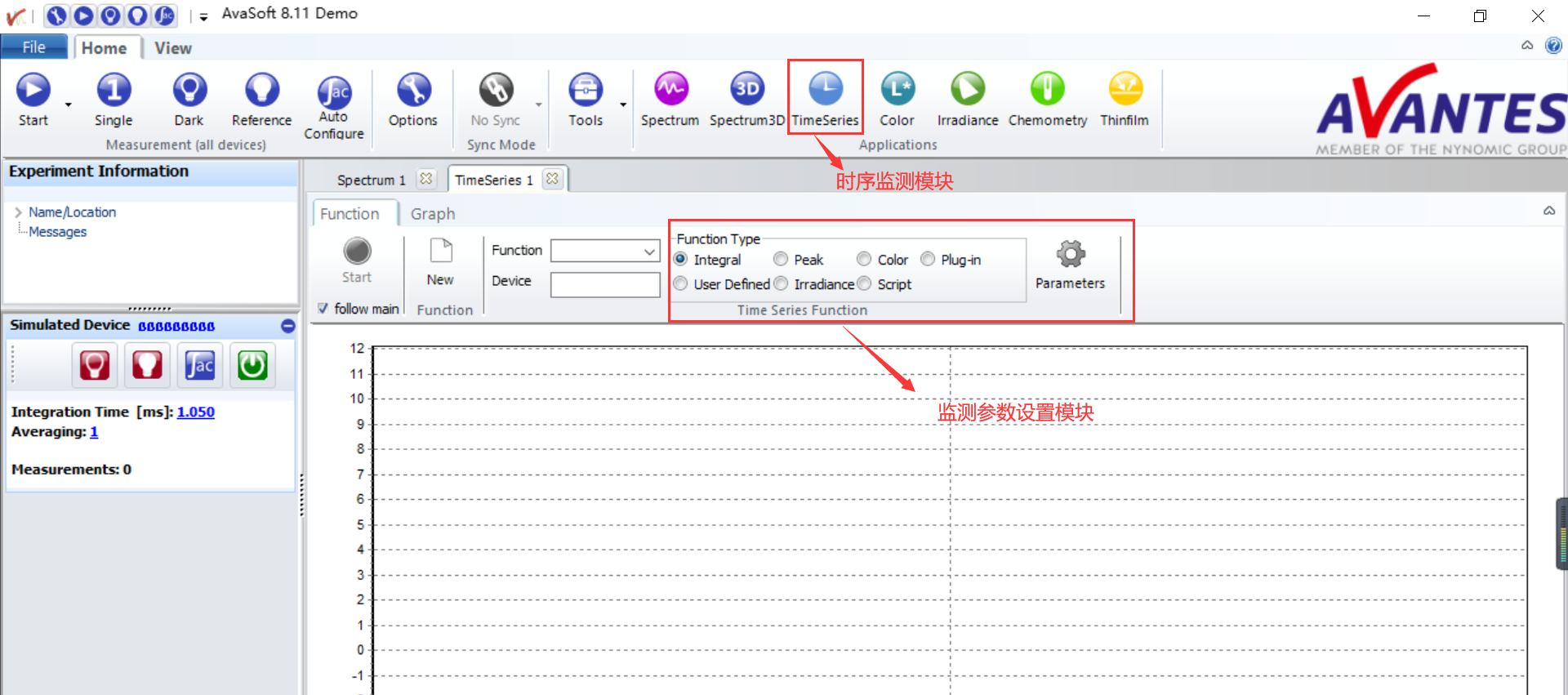 要監(jiān)測激光波長隨時間的變化,只需要在軟件中打開 TimeSeries模塊,設(shè)置希望監(jiān)測的參,就可以看到激光波長,峰值,強度等設(shè)置參數(shù)隨時間變化的曲線了。軟件還能夠允許您多窗口同步工作,同時監(jiān)測多個參數(shù)隨時間的變化。