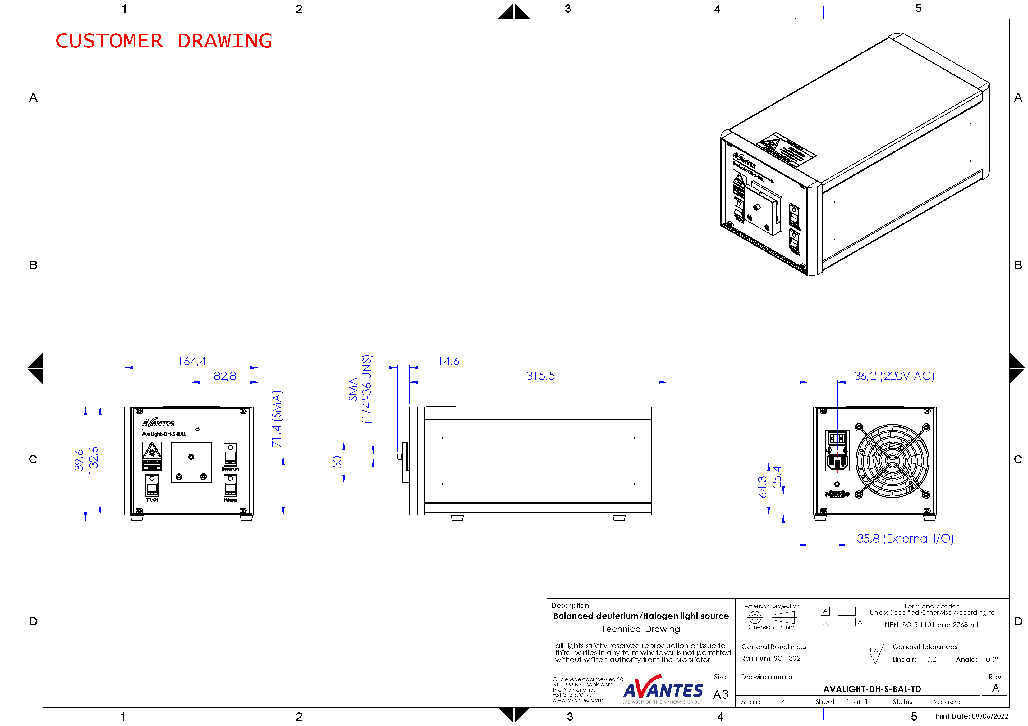 | AvaLight-DH-S-BAL | 均衡型氘-鹵鎢燈, 215-2500 nm, 包括 TTL快門, 需使用抗紫外光纖-SR |