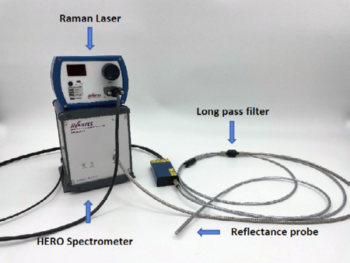 由于AvaSpec-HERO的高靈敏度和信噪比,所以它非常適合熒光測量應(yīng)用。如圖1所示,我們使用785 nm激光器激發(fā)樣品,將反射探頭的一端連接到激光器,同時(shí)在反射探頭的接收端利用長通濾光片來過濾785 nm處的激發(fā)光,確保光譜儀只能檢測到熒光信號(hào)。