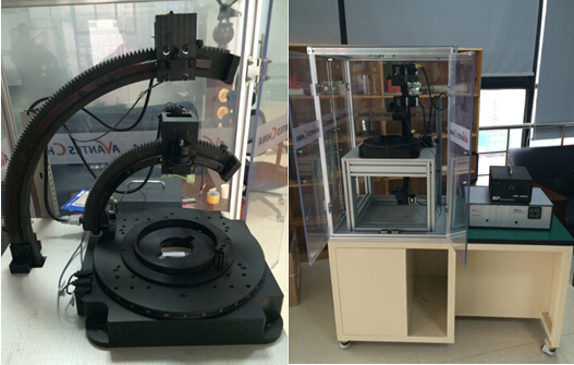 雙向反射分布函數(shù)(Bidirectional Reflectance Distribution Function)表示了不同入射角條件下物體表面在任意觀測(cè)角的反射特性,對(duì)于研究物質(zhì)、材料的基礎(chǔ)物理特性和應(yīng)用前景有著重要的意義。但是這一分布函數(shù)的測(cè)量存在著角度定位精度要求高,測(cè)量點(diǎn)多,測(cè)試數(shù)據(jù)量大的難點(diǎn),單純由手動(dòng)操作難以完成。荷蘭Avantes公司研發(fā)了雙向反射分布函數(shù)測(cè)量系統(tǒng),集成大功率鹵鎢燈照明系統(tǒng)、雙通道光纖光譜儀探測(cè)系統(tǒng)、測(cè)量機(jī)械系統(tǒng)和控制系統(tǒng)。