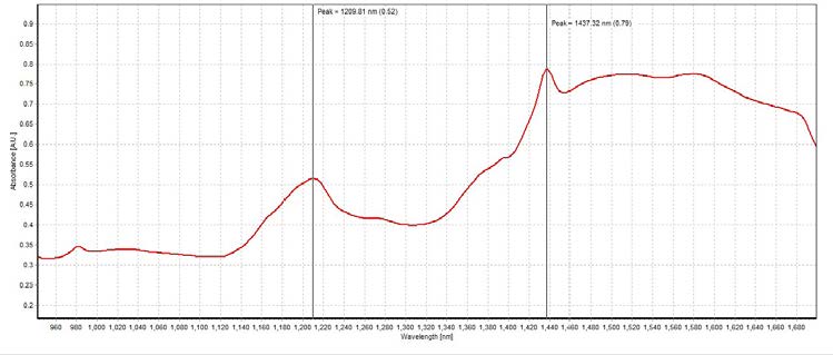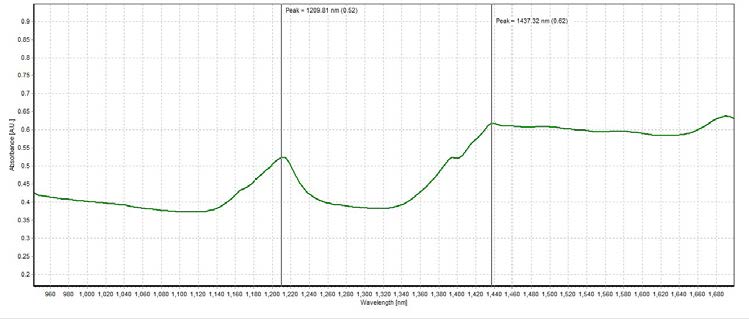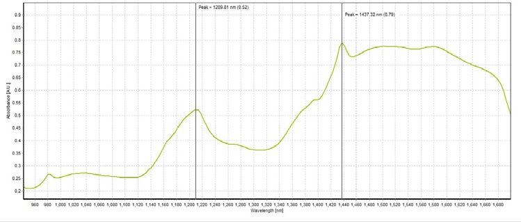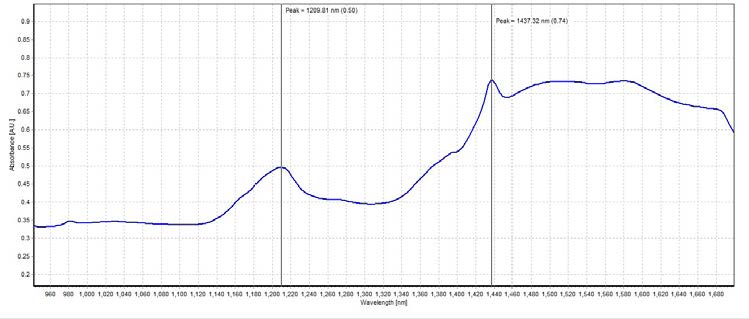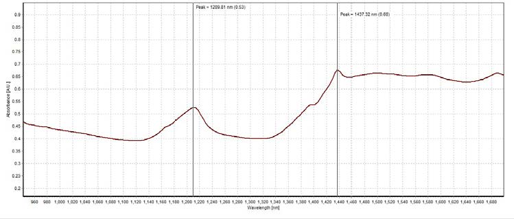 峰值在1209.81 nm和1437.32 nm,吸光度分別為0.50 A.U.和0.74 A.U.