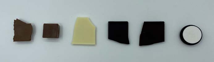 圖1:實(shí)驗(yàn)中使用的五種巧克力樣品和白參考