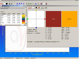 以CIELAB圖表顯示,還有實(shí)際的樣品顏色和參色以及相應(yīng)的△ELab, △L*, △a*, 或 △b*值都可以被顯示和保存。